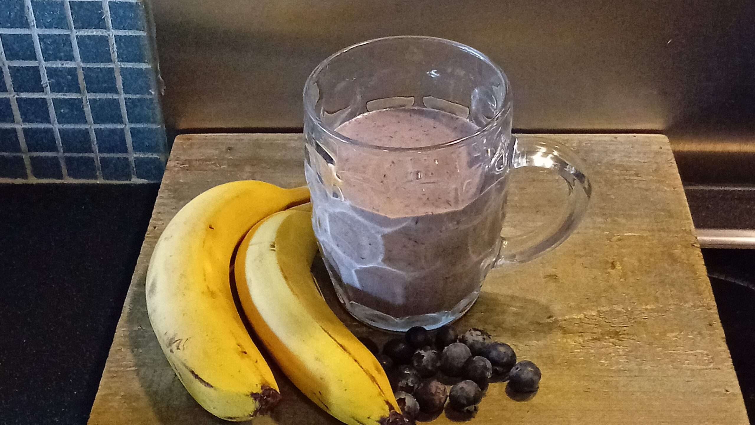 Was de bosbessen, snijd de banaan in stukjes. Plaats alle ingrediënten in een smoothie maker en pureer fijn. Geniet meteen! De bereidingswijze staat ook in deze YouTube-video van Vera’s Lifestyle Wereld.